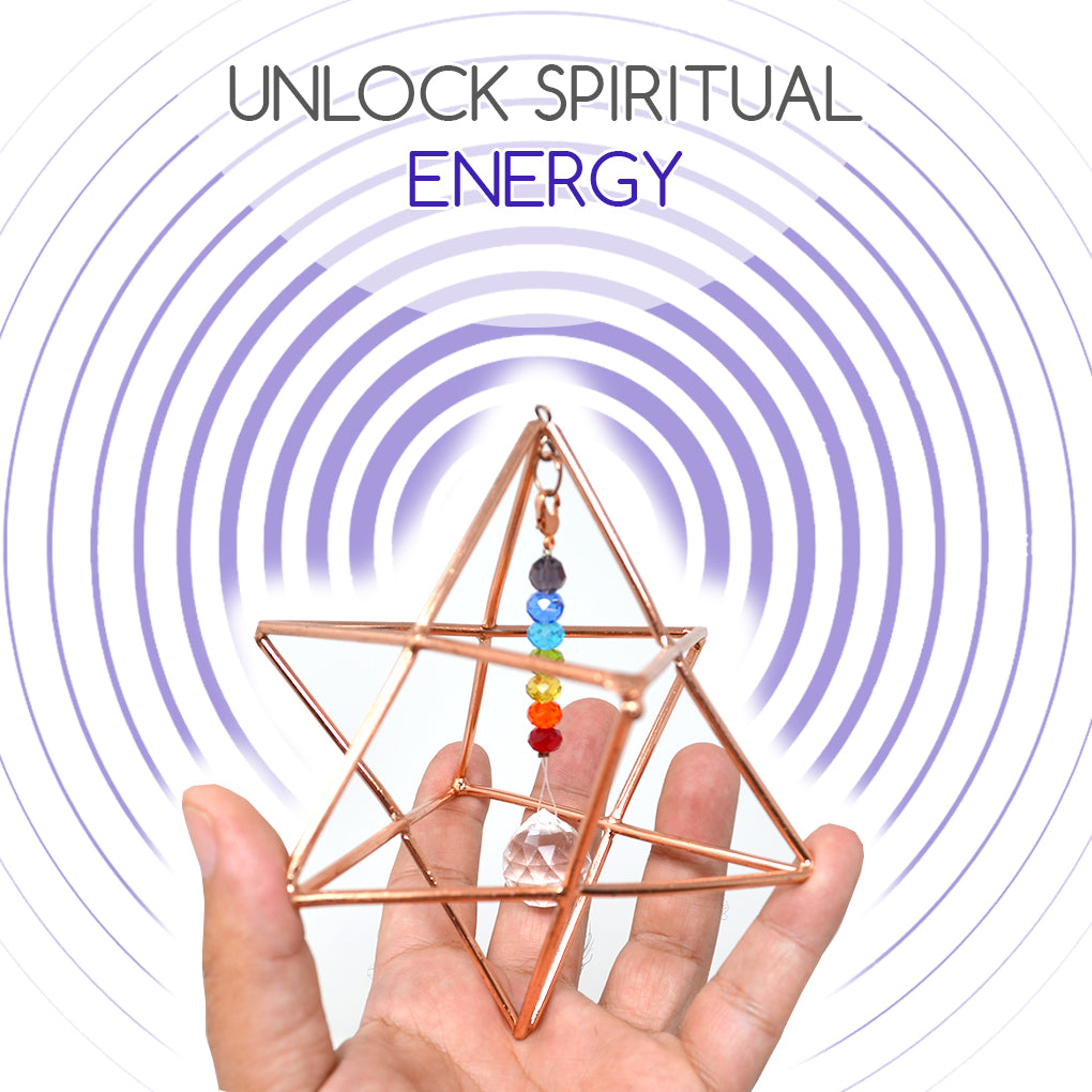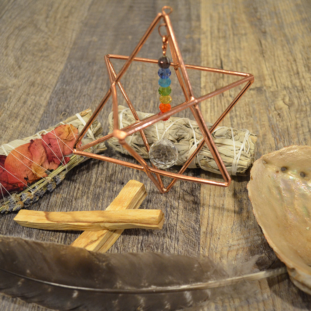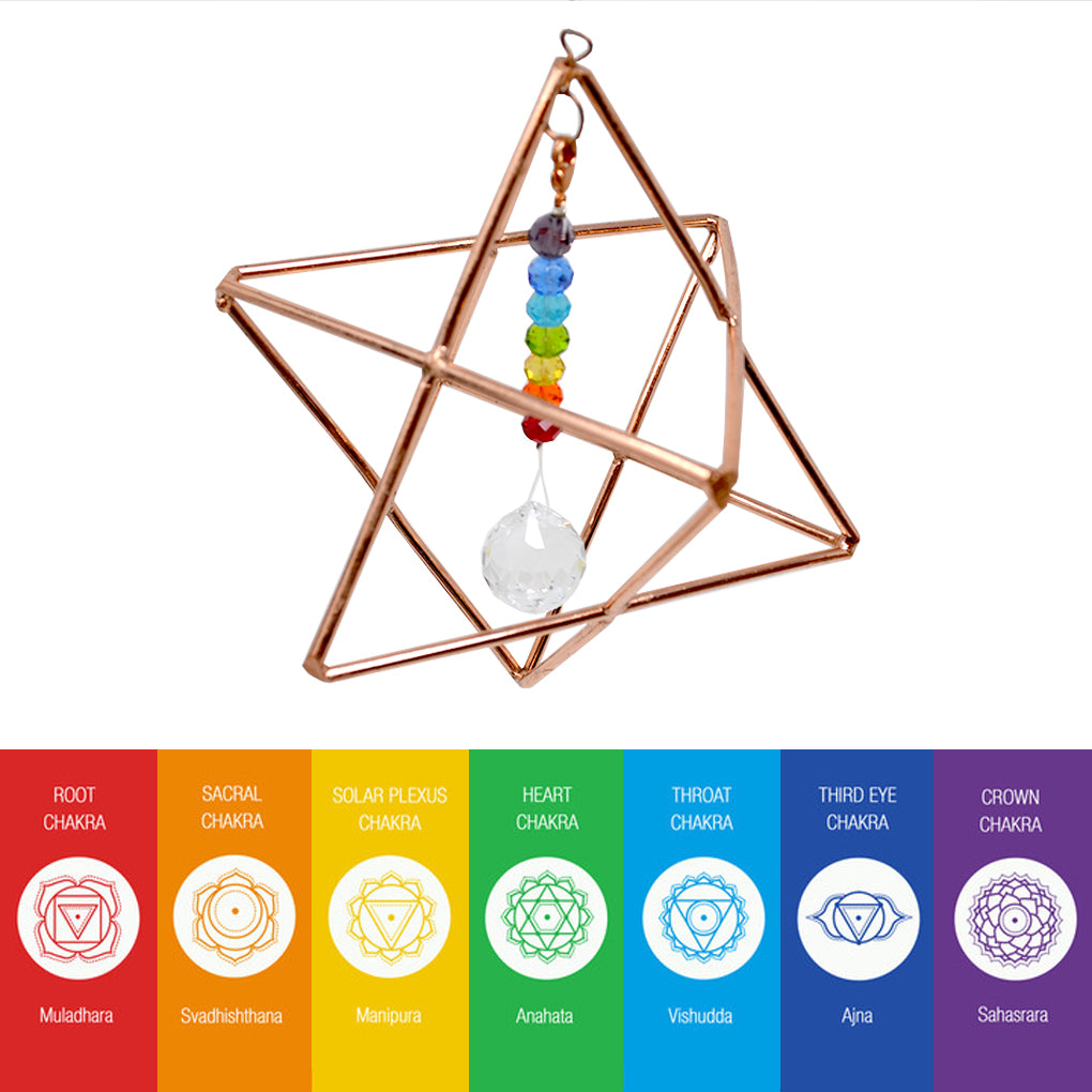 100% Solid Copper 4" Merkaba with Chakra Beads for Meditation , Body Healing , Reiki Balancing Chakras , Crystal Recharging , Focused Energy