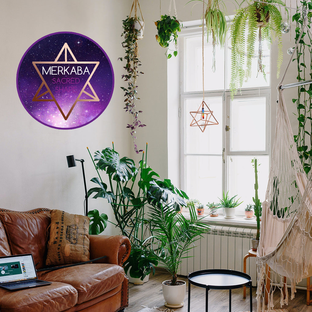 4 inch merkaba catches the light when hung near a window. Merkaba is an ancient word meaning “Light (Mer) Spirit (Ka) Body (Ba)”. The shape is a three dimensional eight pointed star made from two equally sized triangular pyramids of light with a common center. It balances male and female energies and increases connection between the left and right brain. Use this shape as a tool to access the protective love of the universe.