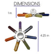 The center healing stone is made from quartz, the “master healer” crystal. It is believed to store, regulate and release energy for aiding concentration and memory. Combined with the chakra stones it amplifies the healing and balancing properties of the surrounding stones.