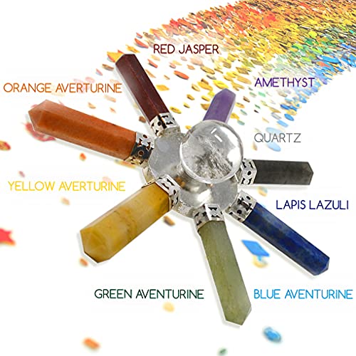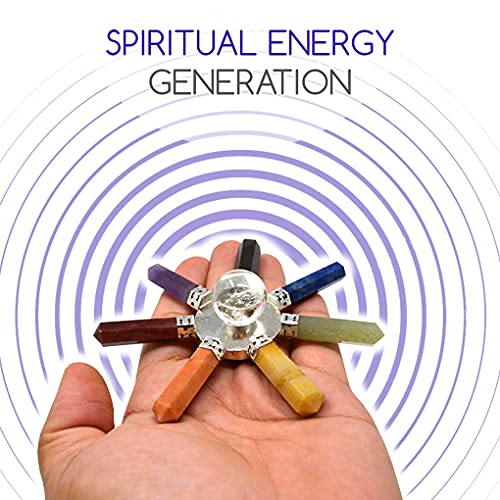 Spiritual Energy Generator with Quartz Crystal Ball and 7 Reiki Chakra Gemstones for Balancing Chakras, Aura Cleansing, Ghost Hunting, Meditation Chi