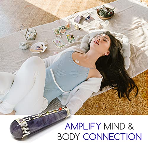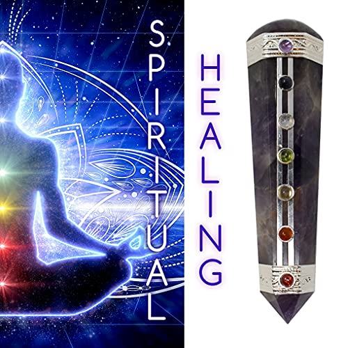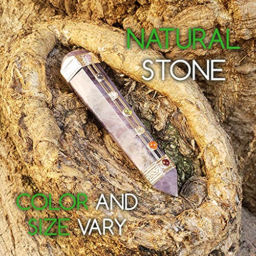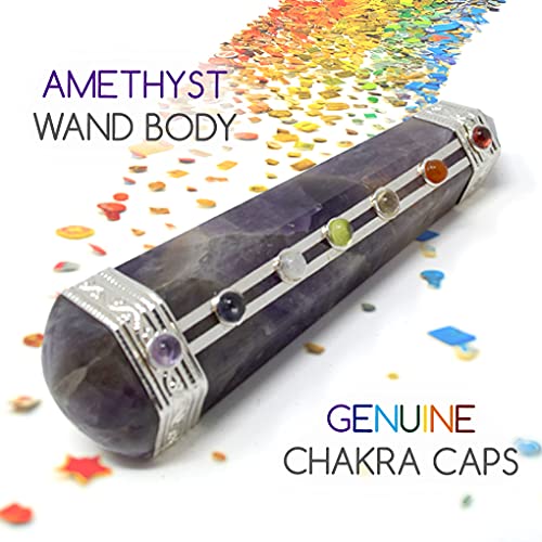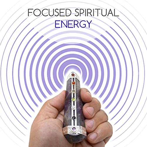Spiritual Energy Amethyst Wand with 7 Reiki Chakra Gemstones for Body Healing, Reiki Balancing Chakras, Aura Cleansing, Protection, Ghost Hunting, Meditation Chi